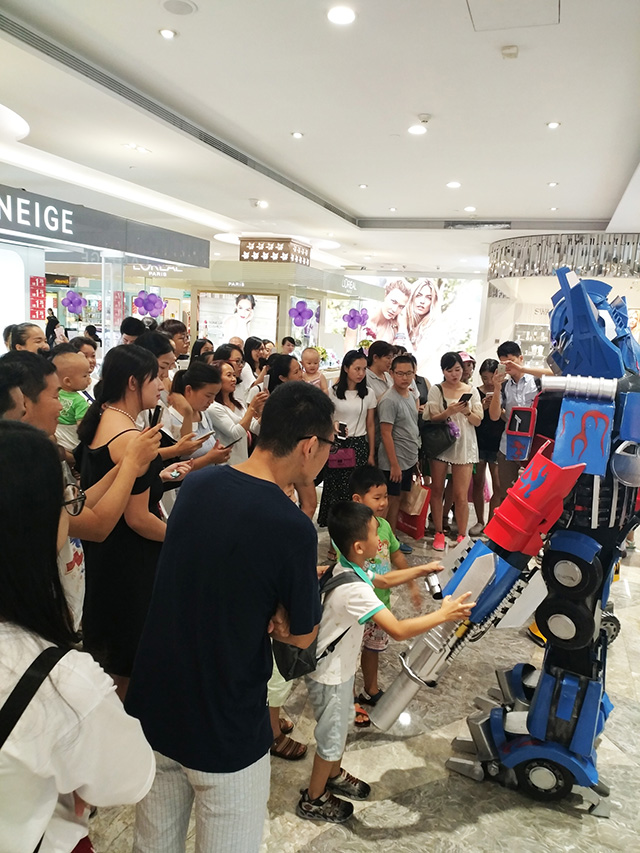 最夺人眼球的非变形金刚巡演莫属了,整个海雅缤纷广场的气氛随着变形金刚的巡游达到顶峰!2米多高的擎天柱和大黄蜂蓄势待发,好像时刻准备变形,所到之处都呈现人山人海的局面,好不壮观!合影,互动似乎都不足以表达顾客对变形金刚的的热情!