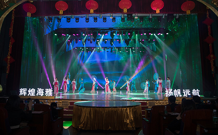17:00时伴随着欢快的开场曲,海雅集团2017年迎春联欢晚会也正式拉开序幕,本次晚会共演出十四个节目,类型包括歌舞、器乐、走秀、武术等,绝大部分都由海雅员工自己编排表演,精彩绝伦的节目和绚丽夺目的舞台效果赢得了现场观众不断的掌声。本次晚会还特设了“最佳人气奖”、“最佳风采奖”、“最佳创意奖”的奖项评选,鼓励参与晚会演出的各分公司团队和员工。