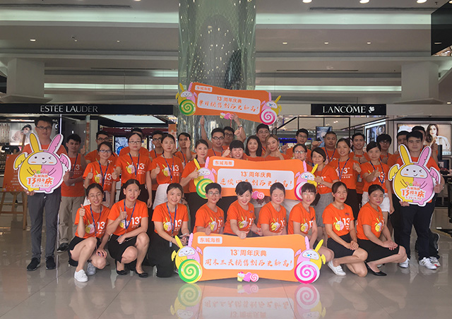 东城海雅13周年庆典的组织、广宣、应急、布置等各项筹备工作,汇聚了全店各部门的心血和通力配合:总经办引领开展多次头脑风暴会议、企划方案不断调整完善和执行、营运商管洽谈品牌独家活动及增值资源、各部门都是通力合作互相配合和支持。在炎热的工作环境下,大家齐心协力,有力地保障了活动得以顺利进行并且还创造了“40%品牌破店庆单日最高销售额,其中54%的品牌同比增长率超50%,连续4年创历史新高!”的好业绩。