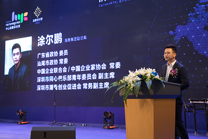 10月26日,海雅集团中山海雅缤纷城项目在宝安海雅宴会厅举办了一场以“携手全球 共话未来”为主题的商业进程发布会。同时,还成功举办了与美国设计公司CallisonRTKL签约仪式暨地产大咖陶文杰分享会。海雅集团常务副总裁张瑞龙、集团副总裁涂尔鹏、董事长助理冯峰、CallisonRTKL 高级副总裁袁孝楠、海雅缤纷城总经理姚晓凤、中山海雅缤纷城商业总经理王伟、地产大咖陶文杰等领导嘉宾共同见证了这场财富盛典。