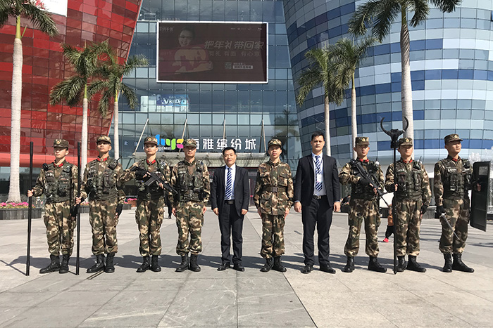 新春时节,宝安区海雅缤纷城购物中心总是给人一种特别的感觉,充满生机和喜气洋洋。一月的鹏城,寒风微袭,春意盎然。在繁忙的春运期间,熙熙攘攘在海雅缤纷城购物中心的人群中,那一抹橄榄绿总是给每一位顾客以温暖和感动。橄榄绿总是会给人安全的感觉。他们坚持守在缤纷城每一处重点部位,他们军容严整、文明热情,他们成为海雅缤纷城购物中心一道靓丽的风景线。