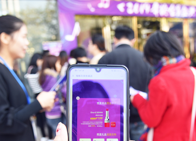 本次亮点活动有:万元抽奖、满额赠MK包、积分换国际化妆品、880元抢1000元夜场卡、美妆首次满3500减500、迪奥口红199元秒杀……活动折扣力度之大,引发一阵阵客流高潮。