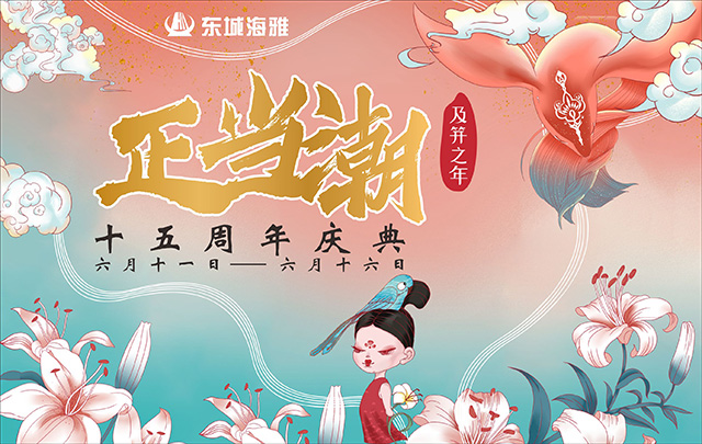 6月11日至6月16日,东城海雅迎来第15个生日。在全国人民奋力抗击新冠肺炎疫情下,我国率先控制住了这场突如其来的疫情,人们对国家的认同感、荣誉感进一步加强,基于此,我们尝试了近两年大火的国潮风格,并引入IP形象,打造了一场东莞首家有独立IP的国潮风活动——及笄之年正当潮。15岁及笄之年,东城海雅也宛如一位刚行完笄礼的少女,开始迈向一个新的阶段,引入更多品类的国际一线品牌,继续填补东莞市场的空白,为这个城市增添一份耀眼的光彩!