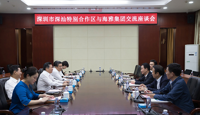 深汕特别合作区党工委书记产耀东对涂辉龙主席一行的来访表示欢迎,并详细介绍了近年来深汕特别合作区的建设成果与规划。涂辉龙主席现场介绍了海雅集团的企业情况,分享了企业创新改革的经验与心得,并表示十分看好深汕特别合作区的未来前景。