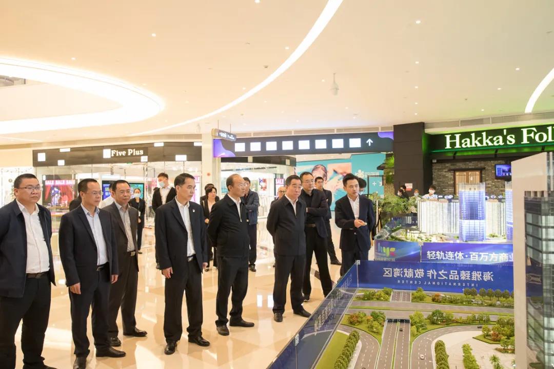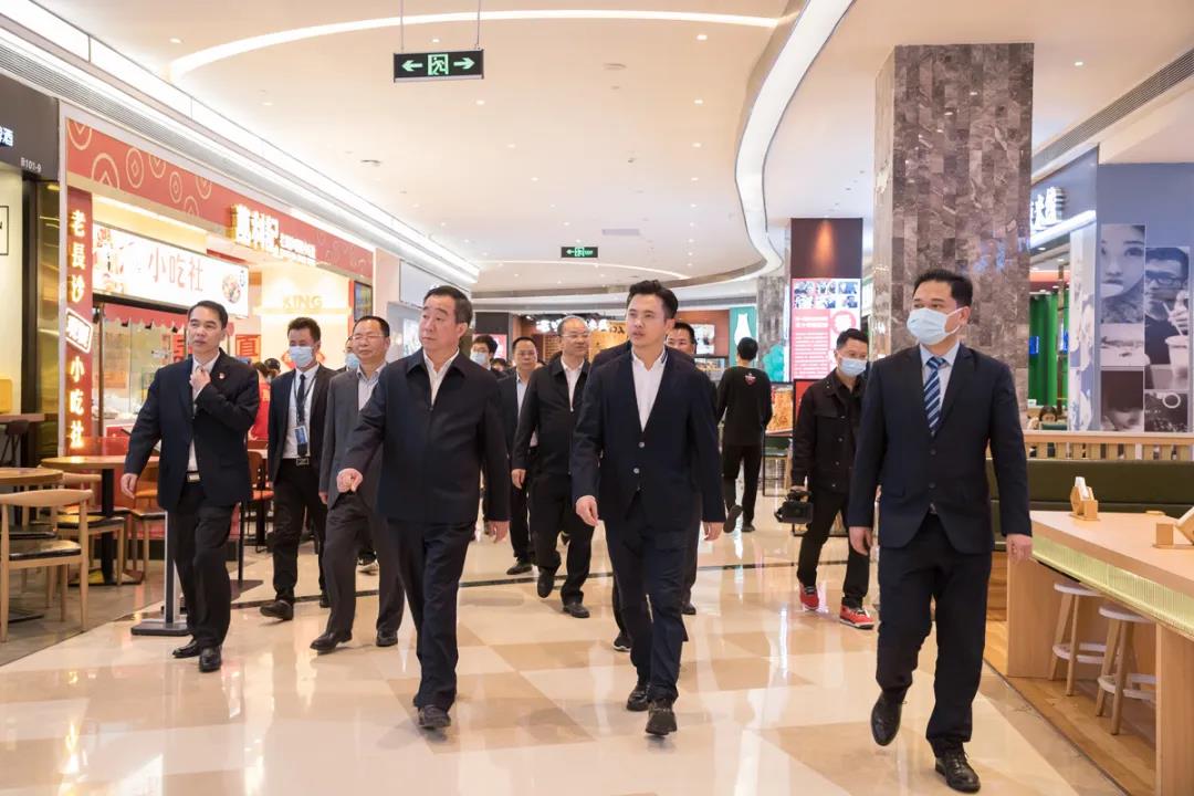海雅集团执行总裁涂尔鹏(右一)与陆河县党政代表团参观海雅缤纷城