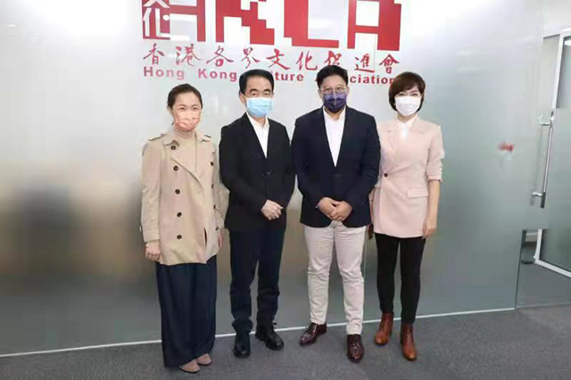 12月10日,香港体育协会暨奥林匹克委员会副会长、全国青联副主席霍启刚先生到访香港各界文化促进会座谈交流。全国政协委员、香港各界文化促进会主席、海雅集团董事局主席涂辉龙,香港各界文化促进会执行主席孙燕华、副主席高璐出席会议。会议围绕香港文化艺术政策、如何支持香港文艺团体发展、增进香港与内地在文化艺术层面的交流合作等议题交换意见及展开讨论。