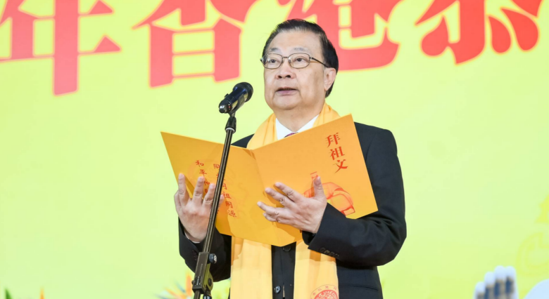 第十三届全国人大常委、香港再出发大联盟秘书长谭耀宗代表大会恭读拜祖文,现场全体人员同声跟读。大家以炎黄子孙为荣,向中华文明始祖致敬,并对祖国和平统一发展、实现中华民族伟大复兴表达深情的祝愿。