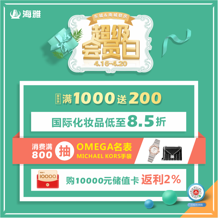 4月16日至4月20日,东莞区海雅百货东城店与南城店联合开展“海雅超级会员日”活动,以超低折扣、品牌让利、直播间专享折扣等福利活动回馈会员,为顾客带来实实在在的返利优惠。[详情]