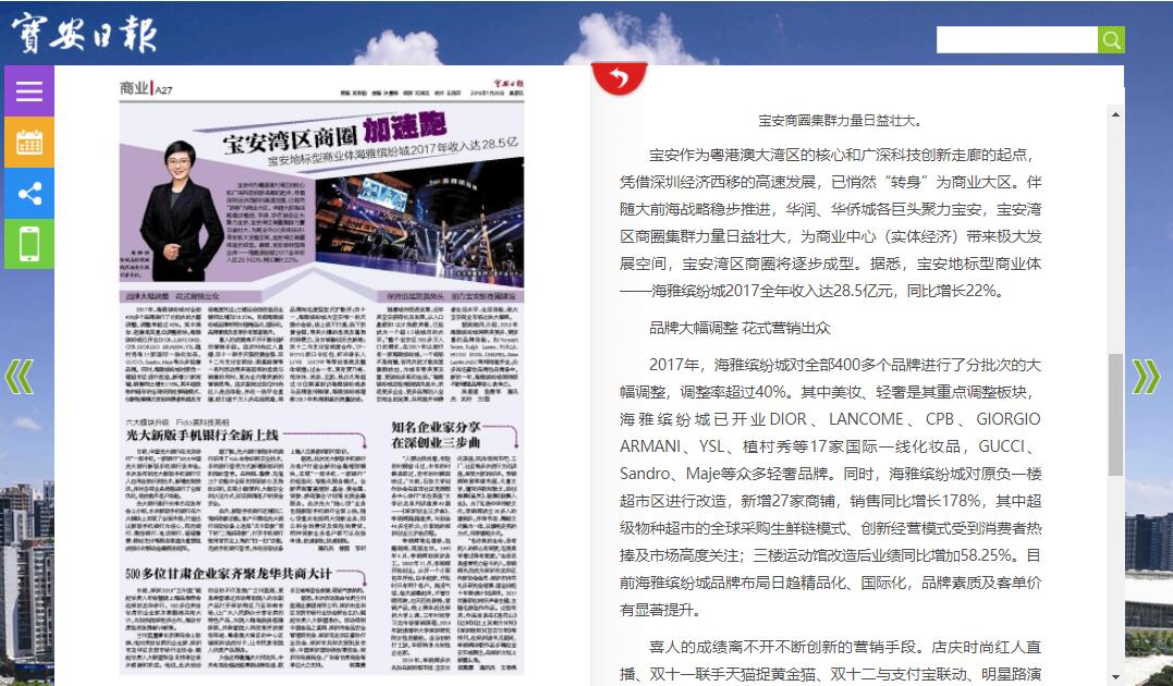 宝安日报|宝安湾区商圈加速跑 宝安地标型商业体海雅缤纷 2018-01-29