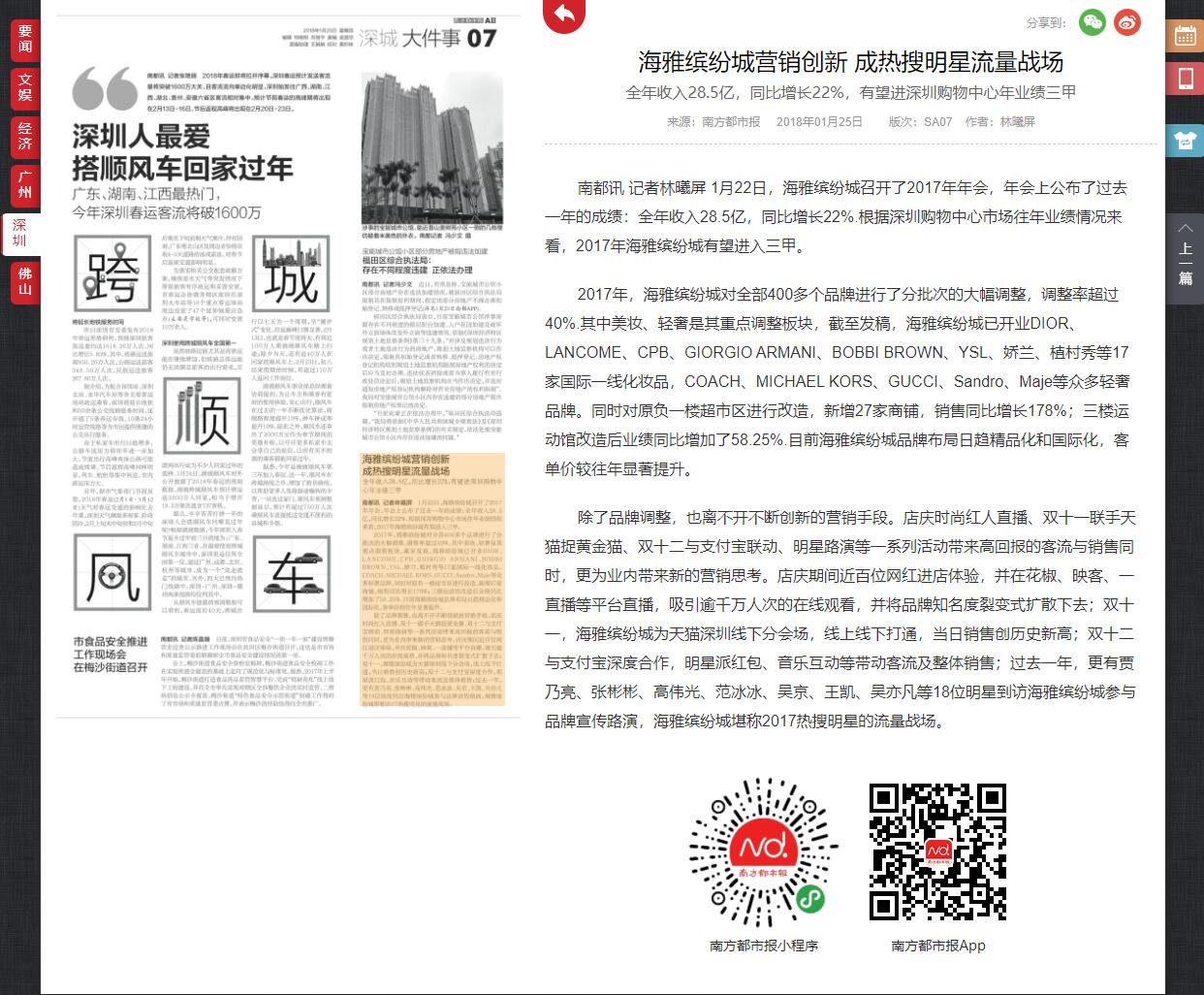 南方都市报|海雅缤纷城营销创新 成热搜明星流量战场 2018-01-26